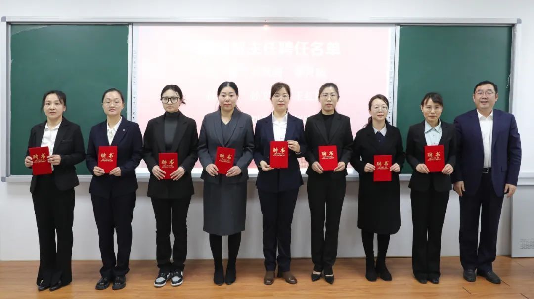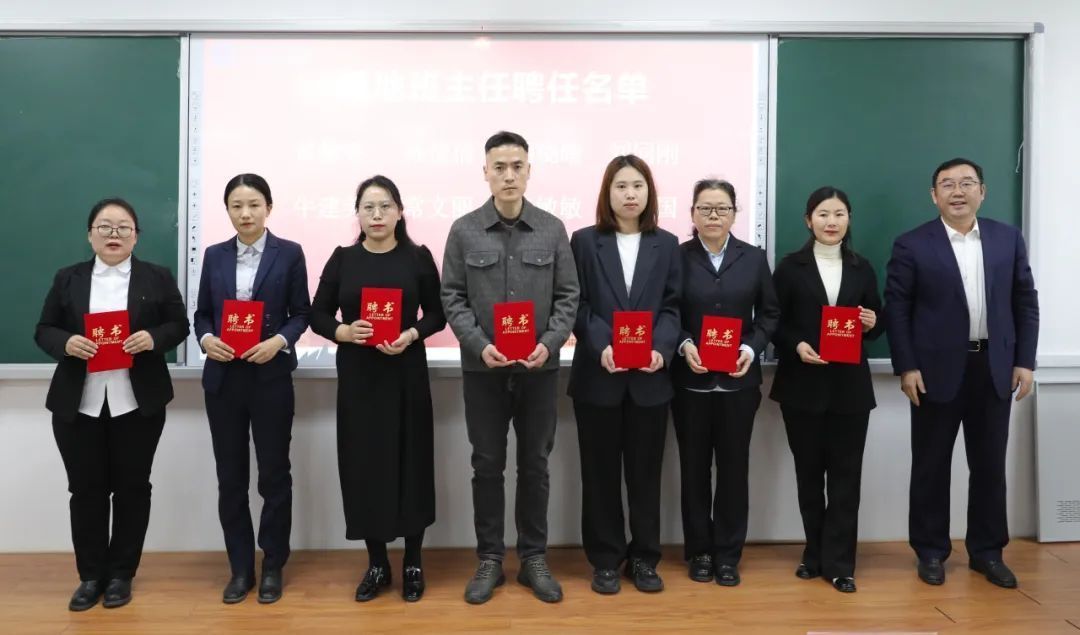 会上举行了基地班主任聘任仪式,王东为17 位基地班主任颁发聘书。